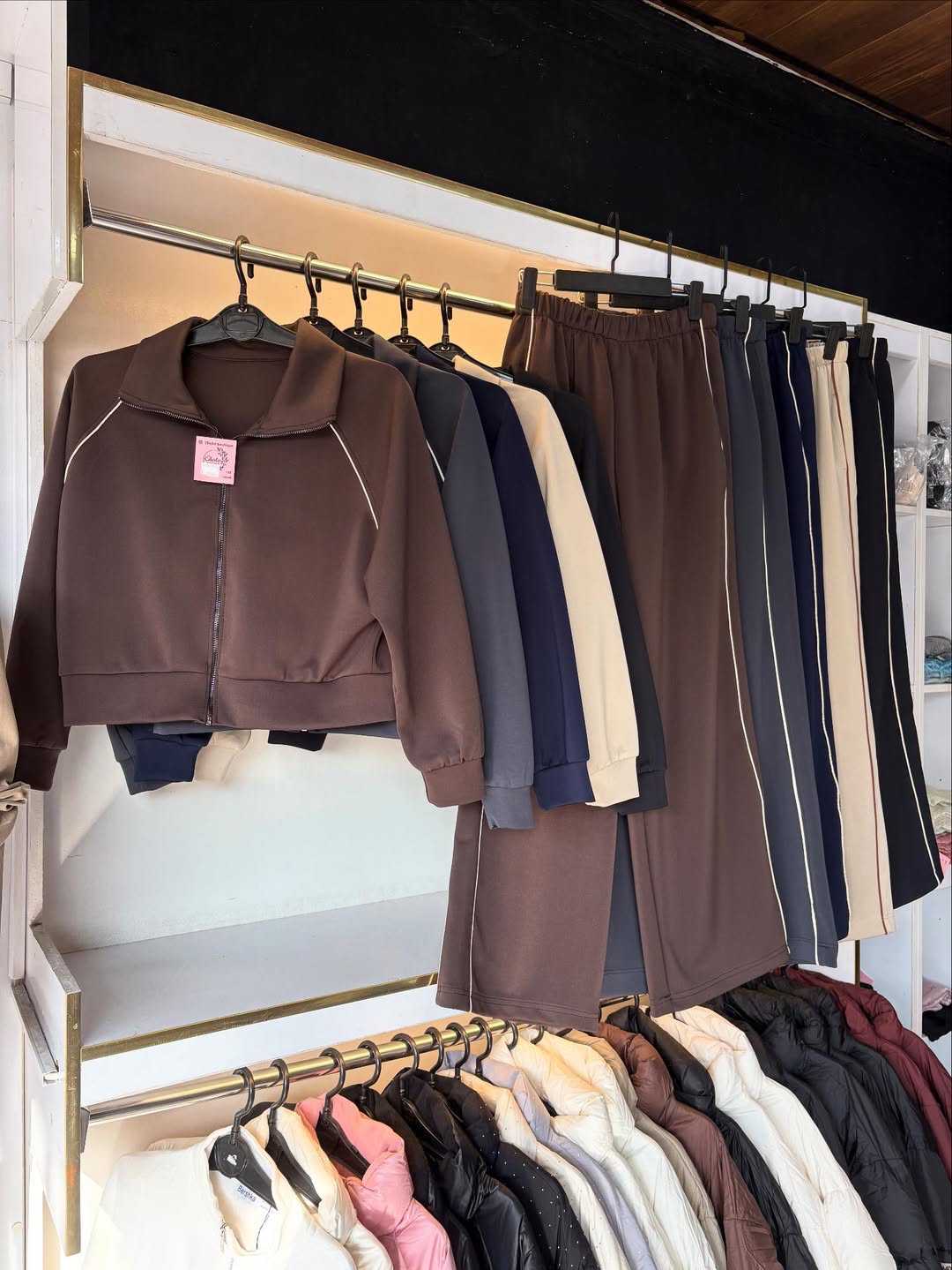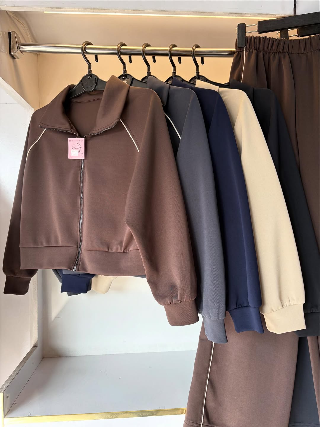 ست سویشرت و شلوار با شلوار جیبدار. تنخور مناسب و فری سایز. دور سینه ۱۱۲، قد جکت ۵۱، قد شلوار ۱۱۰. دور کمر از ۶۰ تا ۱۳۰ با کشسانی، دور ران ۷۰ با کشسانی. مناسب سایزهای ۳۶ تا ۵۰.